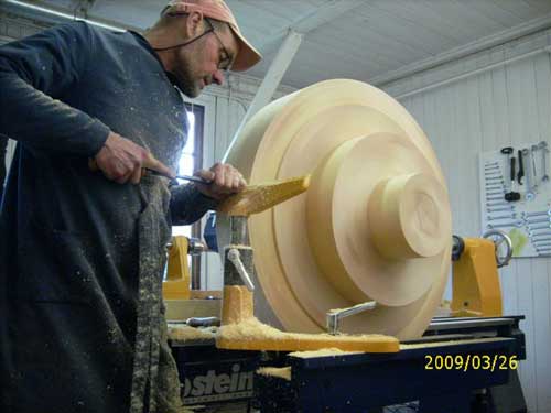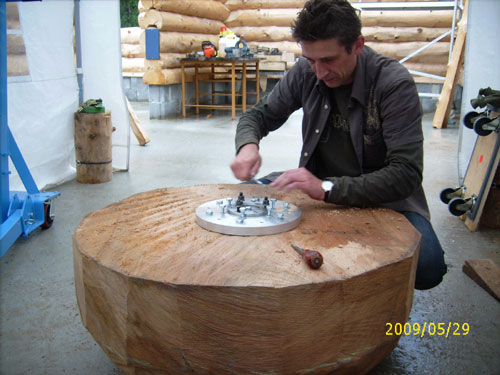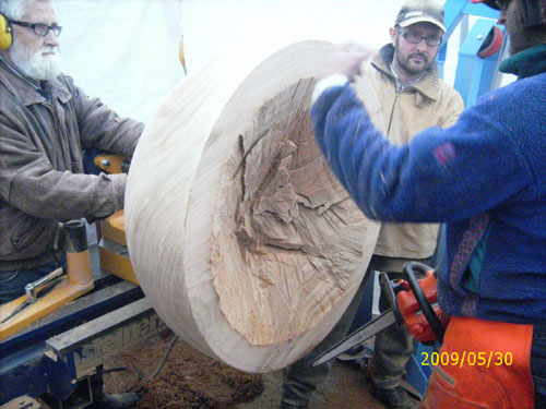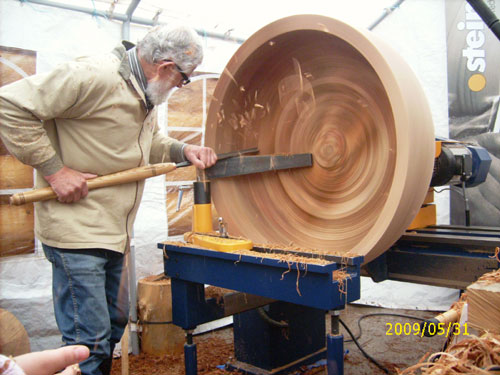 steinert maximo in Aktion, 250 kg Ulme-Rohling wird zur 1000 x 500 mm Schale